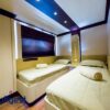 Jaguar 80 è una barca dinamica e scattante nei riflessi, seducente e grintosa nel profilo. Anno 2009, 4 cabine e 4 bagni per ospitare nel massimo del comfort fino a 8 persone. Splendida la cabina armatoriale a tutto baglio, come anche quella vip a prua. 2 cabine marinai. Motori MTU. Ampio il salone centrale, bianco, minimal. Una imbarcazione old style all’esterno e moderna all’interno, un buon connubio per uno yacht di lusso, potente, confortevole e veloce. Caratteristiche importanti sono l’ampiezza degli spazi e la grande abitabilità. Le cabine sono caratterizzate da colori decisi e materiali lucidi, coordinate con i rispettivi bagni, vivacizzati dall’alternanza tra superfici differenti.